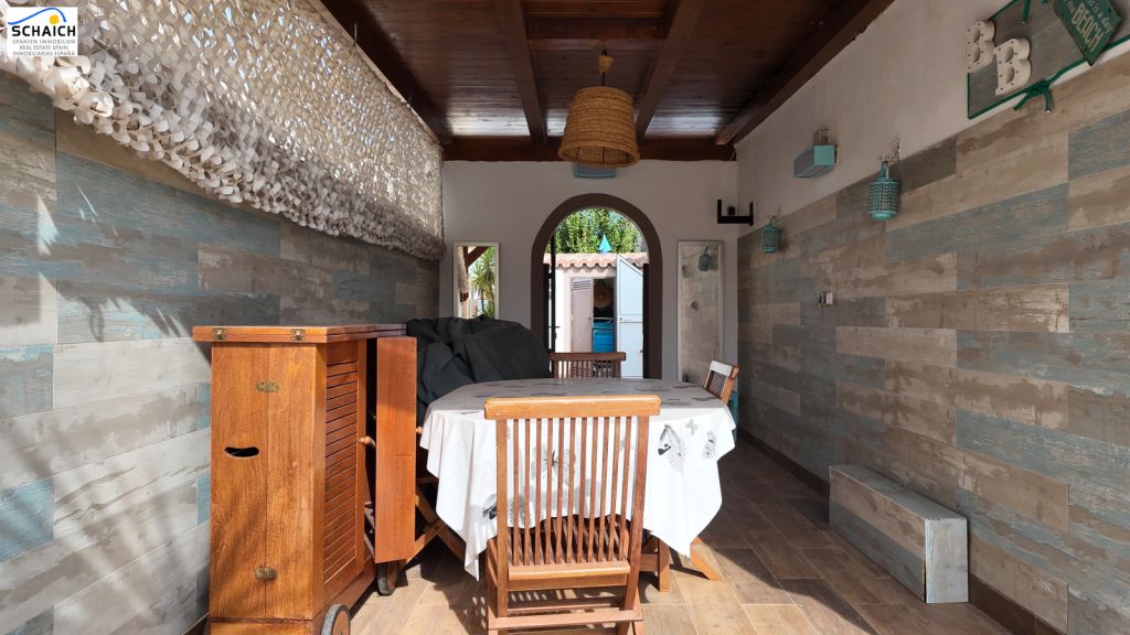 Adosado pareado con piscina privada, totalmente reformado, a solo 500 metros de la playa en El Verger.La vivienda se distribuye en dos plantas. En la planta baja encontramos una acogedora terraza cubierta que da paso al luminoso salón-comedor con chimenea, una cocina americana completamente nueva, dos amplios dormitorios dobles y un baño.