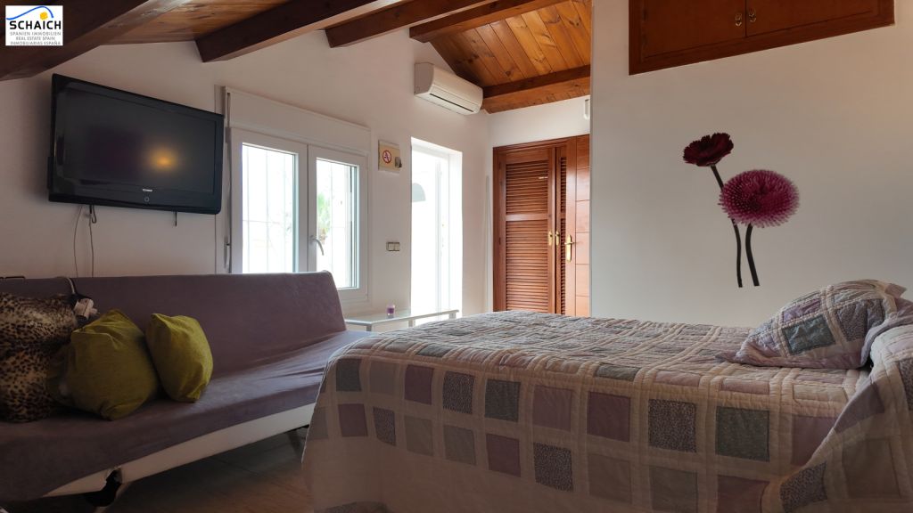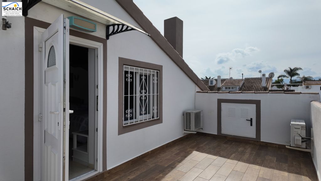 La zona exterior, donde se encuentra la piscina privada, ofrece diversas terrazas tanto cubiertas como al aire libre, además de una ducha exterior, un trastero adicional y una práctica zona de barbacoa, perfecta para disfrutar del clima mediterráneo.Sin posibilidad de licencia turistica.