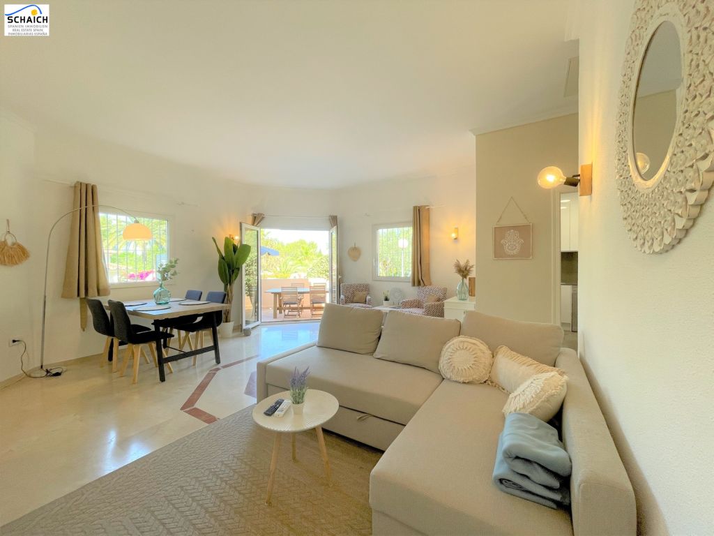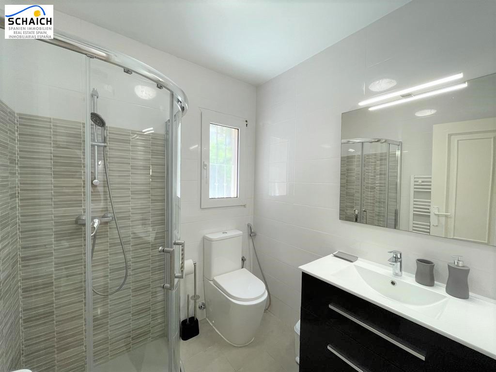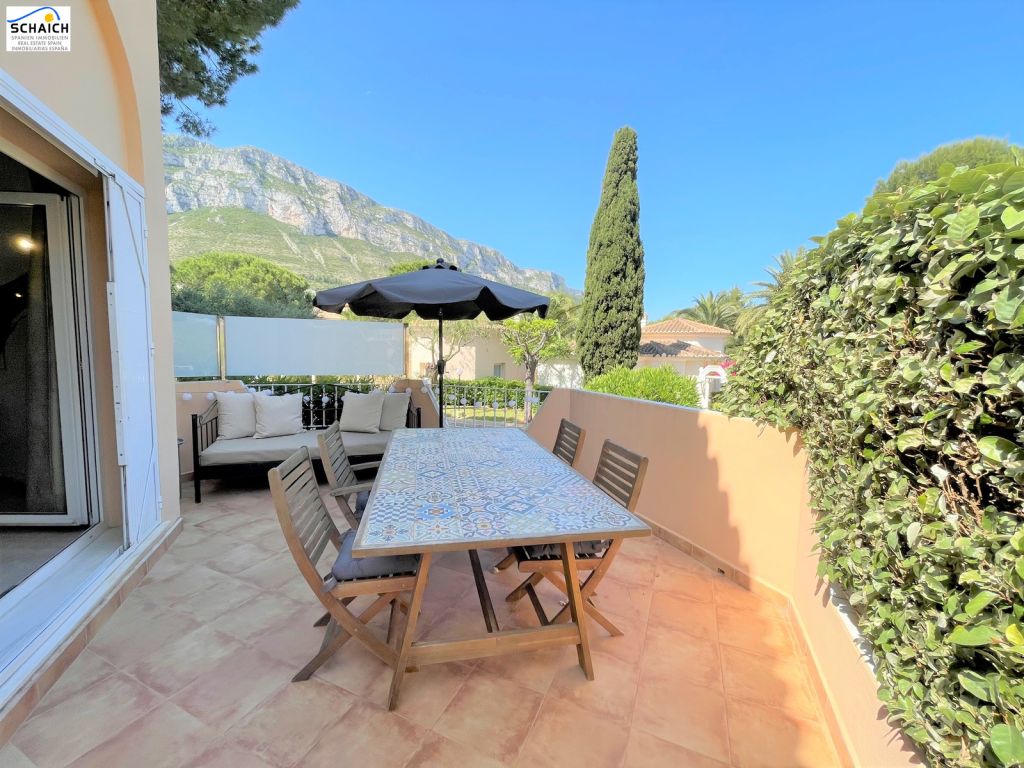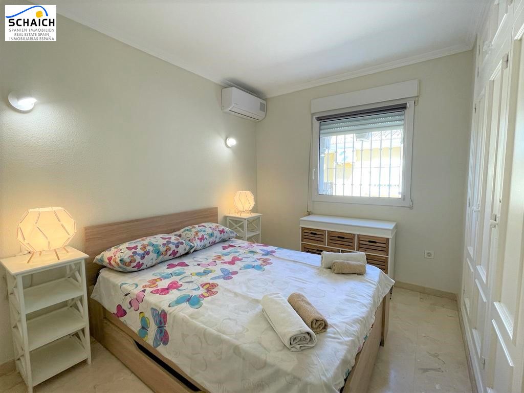 Our modern Villa Mariposa is located in the beautiful community "La Medina" in Dènia, about 2 km from the sea and the downtown. Here you can enjoy a perfect family holiday with mountain views of the nature reserve "El Montgó". The property has been renovated in 2019 and is divided on two floors. On the main floor, there is a bright and cosy living room with a (sofa) bed, as well as a dining area and direct access to the beautiful and spacious outdoor terrace. This terrace is perfect for enjoying an outdoor breakfast or for planning a barbecue evening, as it also has an electric grill. On the same main floor there is a fully equipped modern kitchen with integrated fridge and freezer, induction hob, oven, dishwasher, toaster, coffee machine and much more. The upper floor is accessed by 5 small steps and there you will find the 2 double bedrooms, one of them with bathroom en suite. Both the bedrooms and the living room have air conditioning hot/cold. It also has a desk and monitor, making it ideal for use as an office space in the living room. Plug in your laptop and you're ready to go. WIFI is available throughout the house. As if that wasn't enough, there is a wonderful and exclusive communal swimming pool with manicured lawns and beautiful palm trees. There is also a parking space with carport for your car, right next to the front door of the house.Ubicación muy agradable y tranquila en Denia, a sólo unos 2 km de la playa de arena y el centro de la ciudad. En Denia encontrará una gran selección de restaurantes, bares, calles comerciales, simplemente todo lo que su corazón de vacaciones desea... El gran centro comercial "Portal de La Marina" está a sólo 20 minutos en coche, y los conocidos campos de golf de La Sella y Oliva Nova también están a pocos minutos en coche. Los aeropuertos de Alicante y Valencia son fácilmente accesibles por autopista en una hora cada uno.Ubicación muy agradable y tranquila en Denia, a sólo unos 2 km de la playa de arena y el centro de la ciudad. En Denia encontrará una gran selección de restaurantes, bares, calles comerciales, simplemente todo lo que su corazón de vacaciones desea... El gran centro comercial "Portal de La Marina" está a sólo 20 minutos en coche, y los conocidos campos de golf de La Sella y Oliva Nova también están a pocos minutos en coche. Los aeropuertos de Alicante y Valencia son fácilmente accesibles por autopista en una hora cada uno.Tamaño de la camas: 1 de cama matrimonial 1.35m x 1.90m y 1 cama matrimonial 1.60m x 1.90mEsta propiedad está inscrita en el Registro de Turismo con el número: VT-494672-A, y está gestionada por la agencia Stella Inmo Consulting con el número de turismo EGVT-803-A.